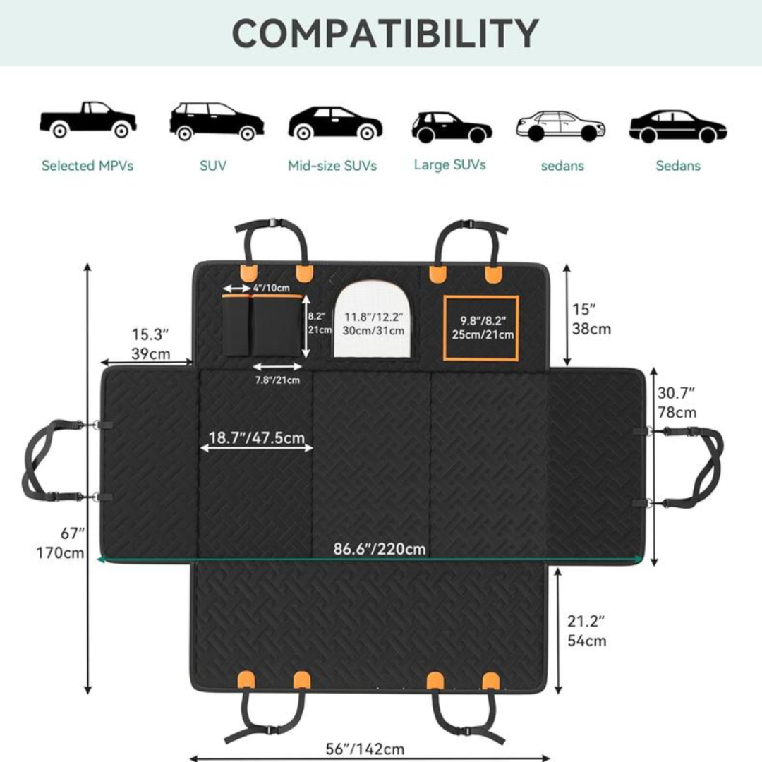 Dogs love car rides — until they slip, slide, or get stuck between the backseat and the footwell. PawGuard solves that instantly. Its built-in hard-bottom seat extender creates a stable, level surface across your entire backseat, eliminating dangerous gaps and giving your dog a safe, secure place to lie down. No more anxious whimpering, awkward climbing, or muddy paws jammed into your carpet. Just plug it in, strap it down, and ride worry-free — in under 60 seconds.
